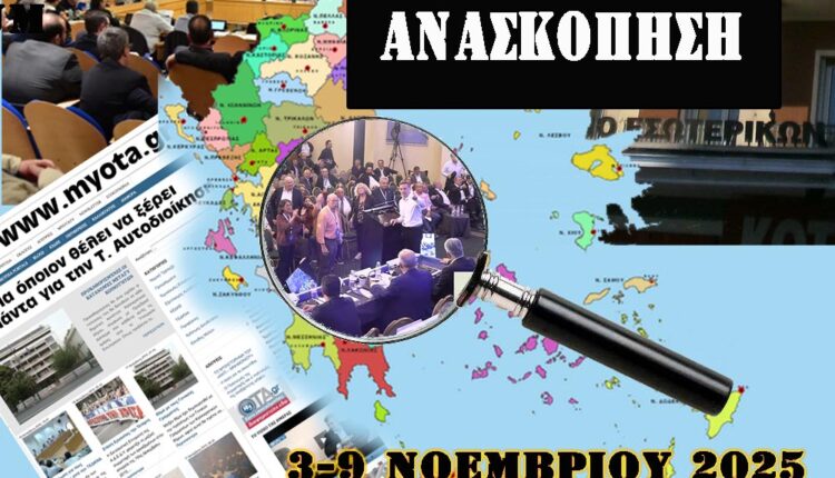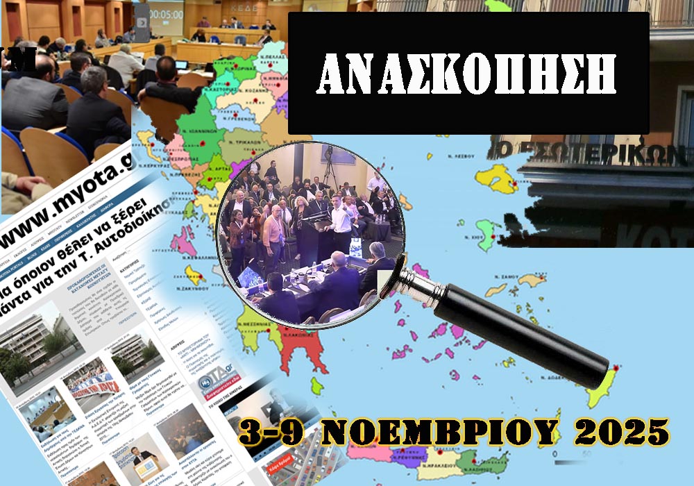 Η περασμένη εβδομάδα ήταν ιδιαίτερα σημαντική για τον χώρο της Τοπικής Αυτοδιοίκησης, με κορυφαίο γεγονός το Ετήσιο Συνέδριο της Κεντρικής Ένωσης Δήμων Ελλάδας (ΚΕΔΕ) που διεξήχθη στην Αλεξανδρούπολη από 6 έως 8 Νοεμβρίου. Το συνέδριο, που χαρακτηρίστηκε από επεισοδιακές συνεδρίες, φιλοξένησε σημαντικές παρεμβάσεις υπουργών, οι οποίοι προέβησαν σε εξαγγελίες και ανακοινώσεις καίριας σημασίας. Η ιστοσελίδα myota.gr συγκέντρωσε σε ειδική ενότητα όλα τα άρθρα που δημοσίευσε κατά τη διάρκεια του τριημέρου, ενώ υπόσχεται να συνεχίσει την κάλυψη με επιπλέον αναλύσεις των πιο σημαντικών ομιλιών.