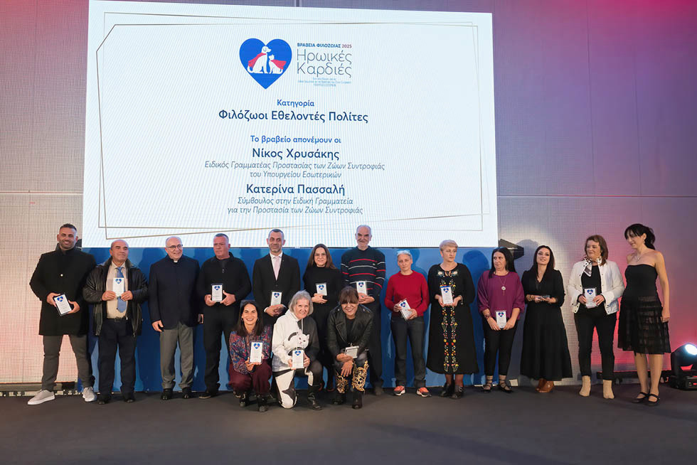 Βραβεία Φιλοζωίας «Ηρωικές Καρδιές»: Τιμήθηκαν οι πρωτοπόροι της προστασίας ζώων
