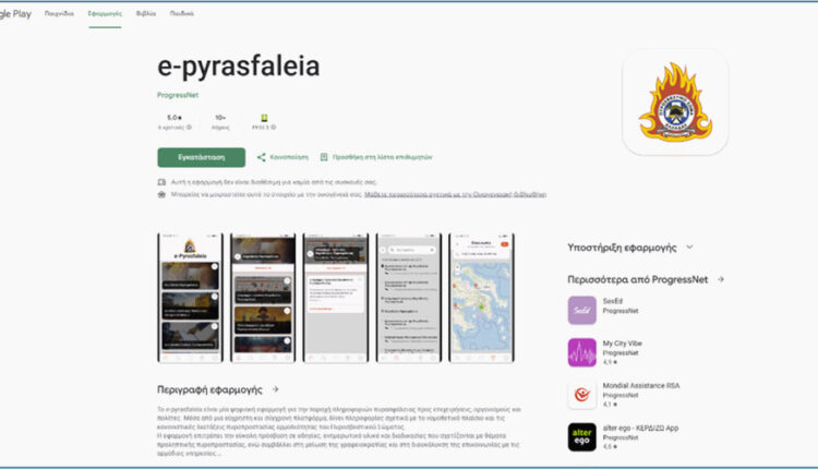 Η εφαρμογή «e-Pyrasfaleia» είναι διαθέσιμη για δωρεάν λήψη σε όλες τις συσκευές: