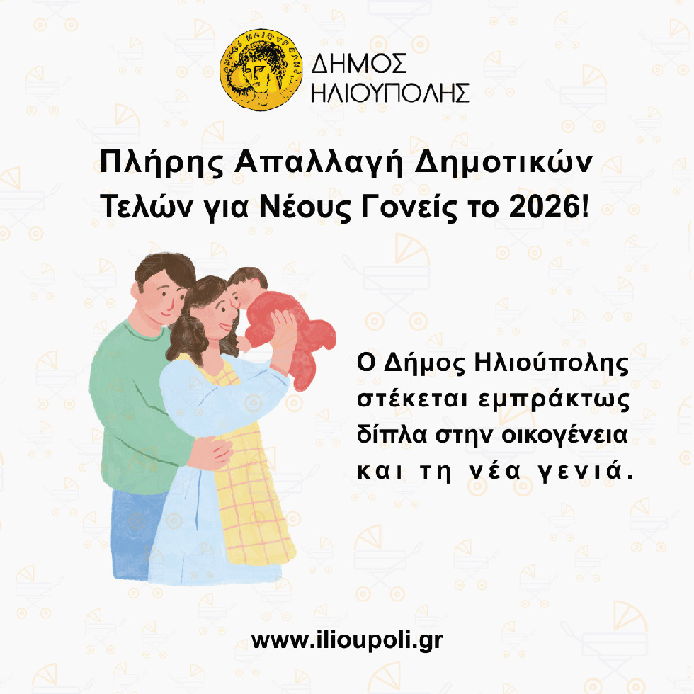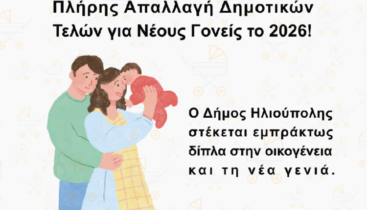 Ο Δήμος Ηλιούπολης στηρίζει τους νέους γονείς με πλήρη απαλλαγή δημοτικών τελών