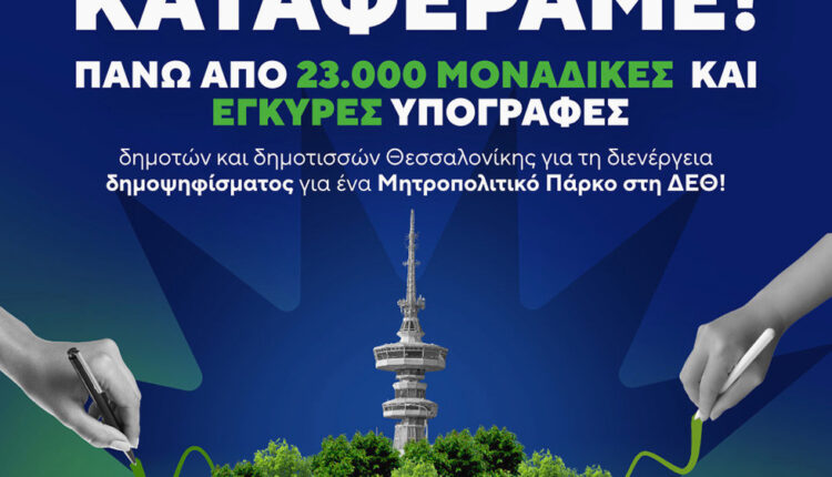Η πρωτοβουλία πολιτών για τη διενέργεια δημοψηφίσματος σχετικά με το μέλλον της Διεθνούς Έκθεσης Θεσσαλονίκης (ΔΕΘ) εισέρχεται σε μια κρίσιμη φάση, καθώς το αίτημα συγκέντρωσε πάνω από 23.000 έγκυρες υπογραφές, υπερβαίνοντας κατά πολύ το απαιτούμενο όριο. Αυτή η εξέλιξη, με σημαντικό θεσμικό και πολιτικό αντίκτυπο, ανοίγει τον δρόμο για το πρώτο επίσημο δημοτικό δημοψήφισμα στην Ελλάδα και φέρνει ξανά στο επίκεντρο το ζήτημα της συμμετοχής των πολιτών στη λήψη αποφάσεων για τον αστικό σχεδιασμό και το μέλλον της Θεσσαλονίκης.