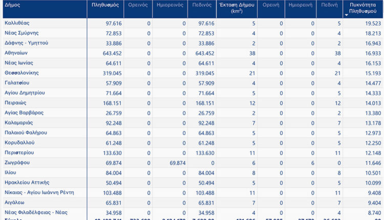 Πώς η πυκνότητα πληθυσμού διαμορφώνει διαφορετικές πραγματικότητες και προκλήσεις για τους δήμους της χώρας