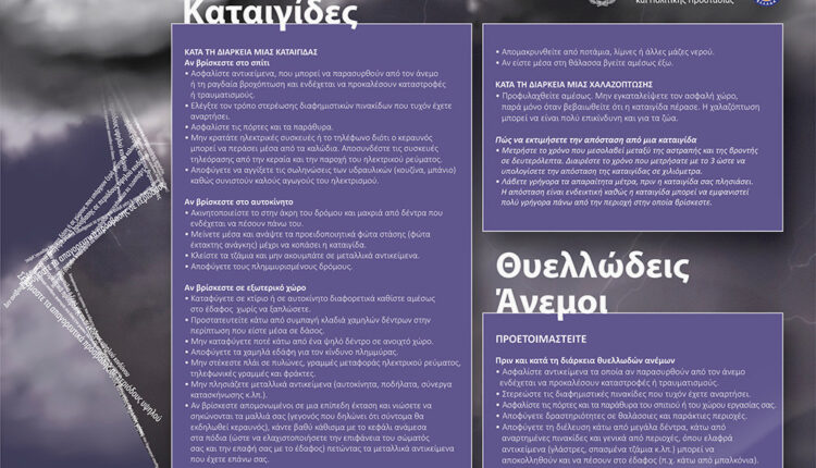 Προειδοποιήσεις από την ΕΜΥ και οδηγίες αυτοπροστασίας από τη Γενική Γραμματεία Πολιτικής Προστασίας για τις επόμενες ημέρες