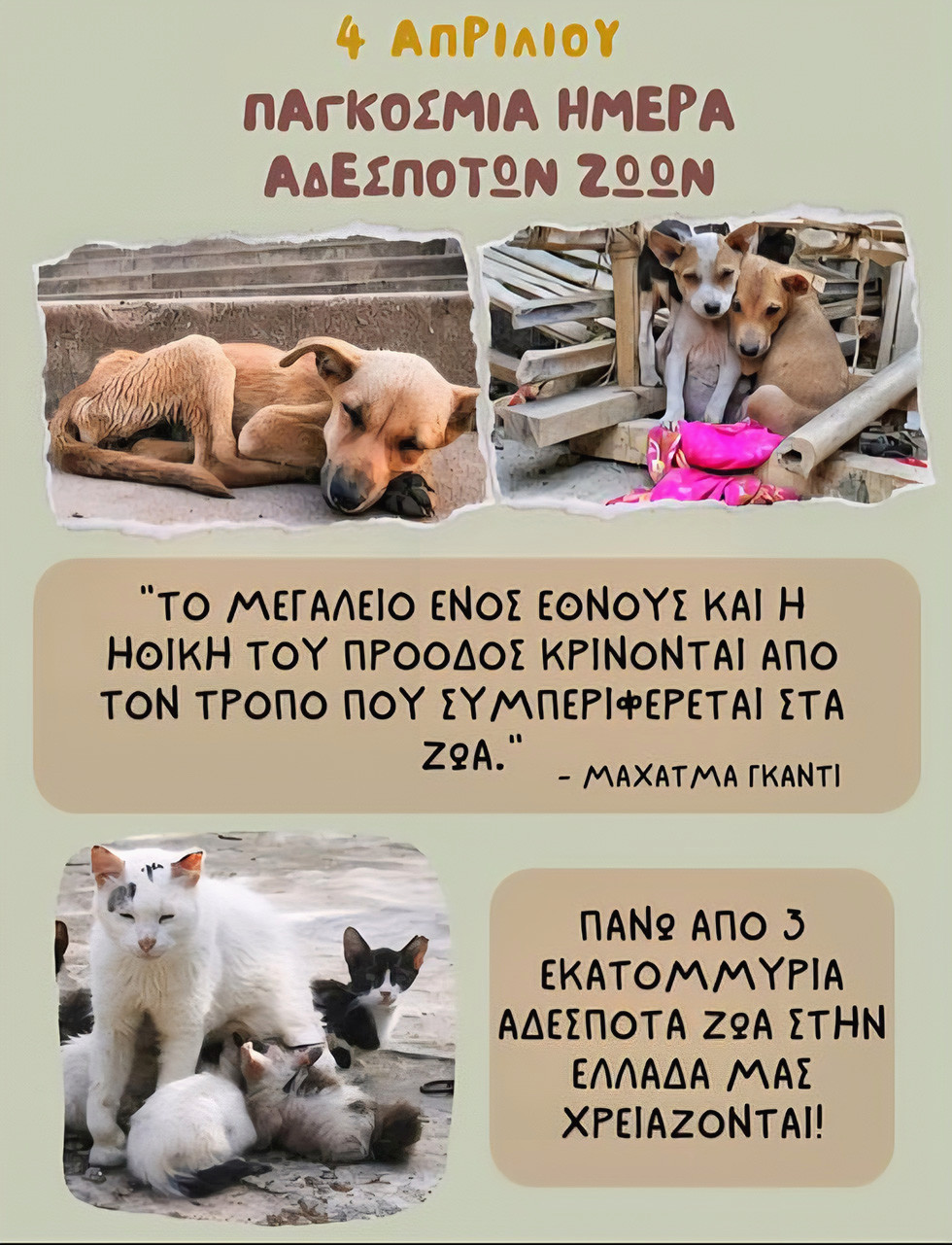 Κάλεσμα για ευαισθητοποίηση, υιοθεσία και φροντίδα των ζώων που έχουν ανάγκη.
