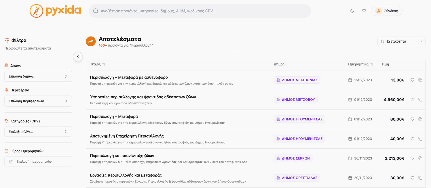 Ο σκοπός της pyxida-ota.gr είναι ακριβώς αυτός: να χαρτογραφήσει την αγορά, να ενημερώσει τις αναθέτουσες αρχές (τους Δήμους) για τις τιμές, τις υπηρεσίες και τους όρους που εφαρμόζονται, με απώτερο στόχο τη βελτίωση της ποιότητας και τη μείωση του κόστους.