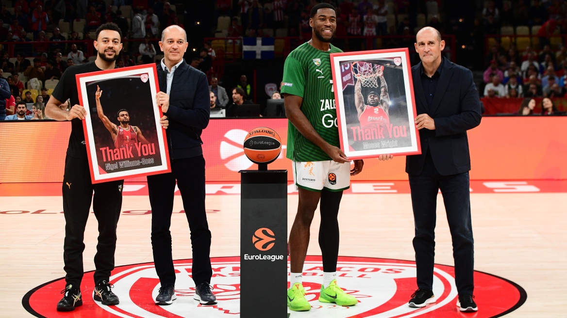 Ο Ολυμπιακός υποδέχεται την Ζάλγκιρις στο πλαίσιο της 10ης αγωνιστικής της EuroLeague, σε ένα παιχνίδι με ιδιαίτερη συναισθηματική φόρτιση, καθώς δύο πρώην αγαπημένοι του κοινού, οι Νάιτζελ Γουίλιαμς Γκος και Μόουζες Ράιτ, επιστρέφουν στο Στάδιο Ειρήνης και Φιλίας με τη φανέλα της λιθουανικής ομάδας. Πριν την έναρξη της αναμέτρησης, η διοίκηση του Ολυμπιακού τίμησε τους δύο αθλητές για την πολυετή προσφορά τους στον σύλλογο, αποσπώντας θερμό χειροκρότημα από τους φιλάθλους. Ενώ ο Μόουζες Ράιτ βρίσκεται κανονικά στη δωδεκάδα της Ζάλγκιρις και αναμένεται να αγωνιστεί, ο Νάιτζελ Γουίλιαμς Γκος, παρά το γεγονός ότι ταξίδεψε στην Αθήνα, δεν θα συμμετάσχει στο παιχνίδι λόγω τραυματισμού, αναγκάζοντας τον να παρακολουθήσει την αναμέτρηση από την κερκίδα. Η παρουσία του Ράιτ στην πλευρά των φιλοξενούμενων προκάλεσε αισθήματα συγκίνησης, με τον κόσμο του Ολυμπιακού να τον υποδέχεται με θερμό χειροκρότημα κατά την παρουσίαση της Ζάλγκιρις.