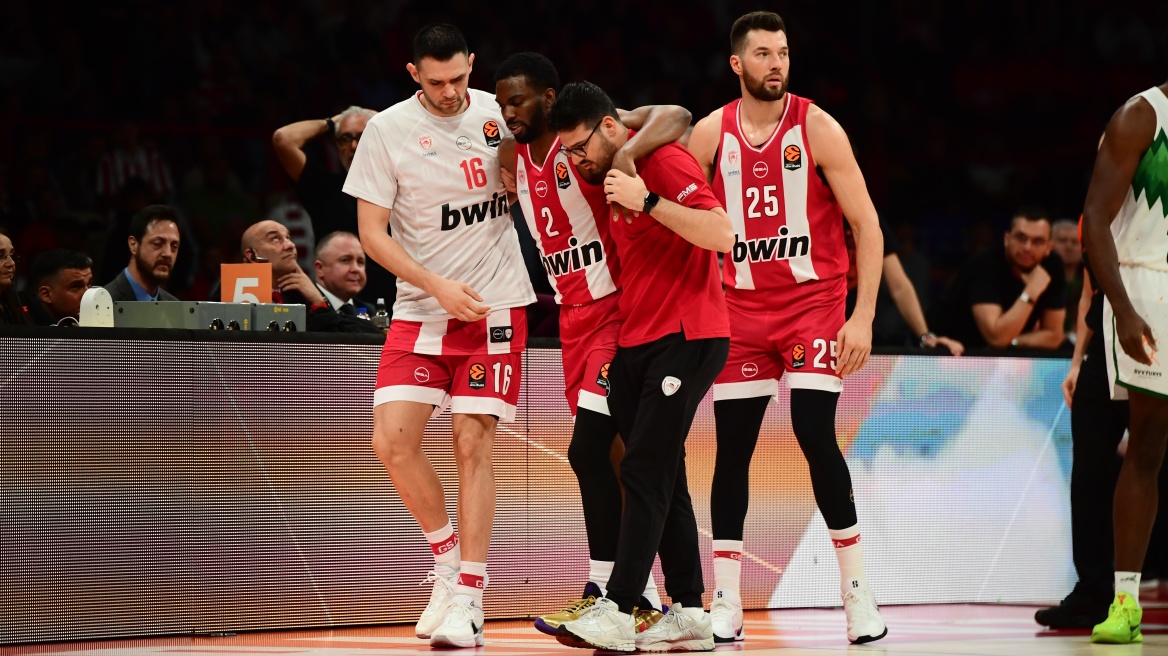 Ο Αμερικανός γκαρντ του Ολυμπιακού υπέστη ζημιά λίγα λεπτά πριν το τέλος της πρώτης περιόδου, προκαλώντας παγωμάρα στους φιλάθλους και ανησυχία για την πορεία του.