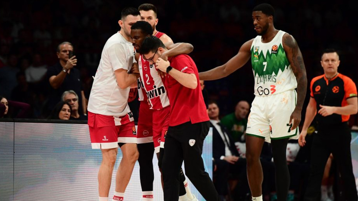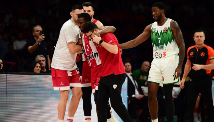 Ο Αμερικανός γκαρντ υπέστη ρήξη αχίλλειου τένοντα στην αναμέτρηση με τη Ζαλγκίρις, βυθίζοντας το ΣΕΦ σε σιωπή.