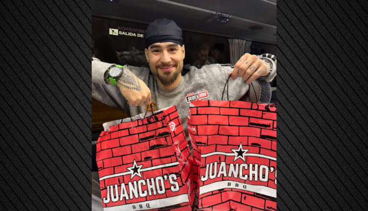 Ο Ισπανός φόργουορντ των «πρασίνων», ο οποίος είναι γνωστό ότι διατηρεί αλυσίδα εστιατορίων φαστ φουντ στην Ισπανία με την επωνυμία “Juancho’s BBQ”, προσέφερε ένα γεύμα σε όλη την ομάδα λίγο πριν την αναχώρηση για την Αθήνα. Ο ίδιος, με ανάρτησή του στον προσωπικό του λογαριασμό στο Instagram, μοιράστηκε μια φωτογραφία από το εσωτερικό του πούλμαν, κρατώντας μια σακούλα από το κατάστημά του, γράφοντας χαρακτηριστικά “Juancho’s BBQ για όλη την ομάδα και για τη νίκη”.