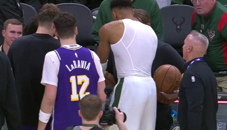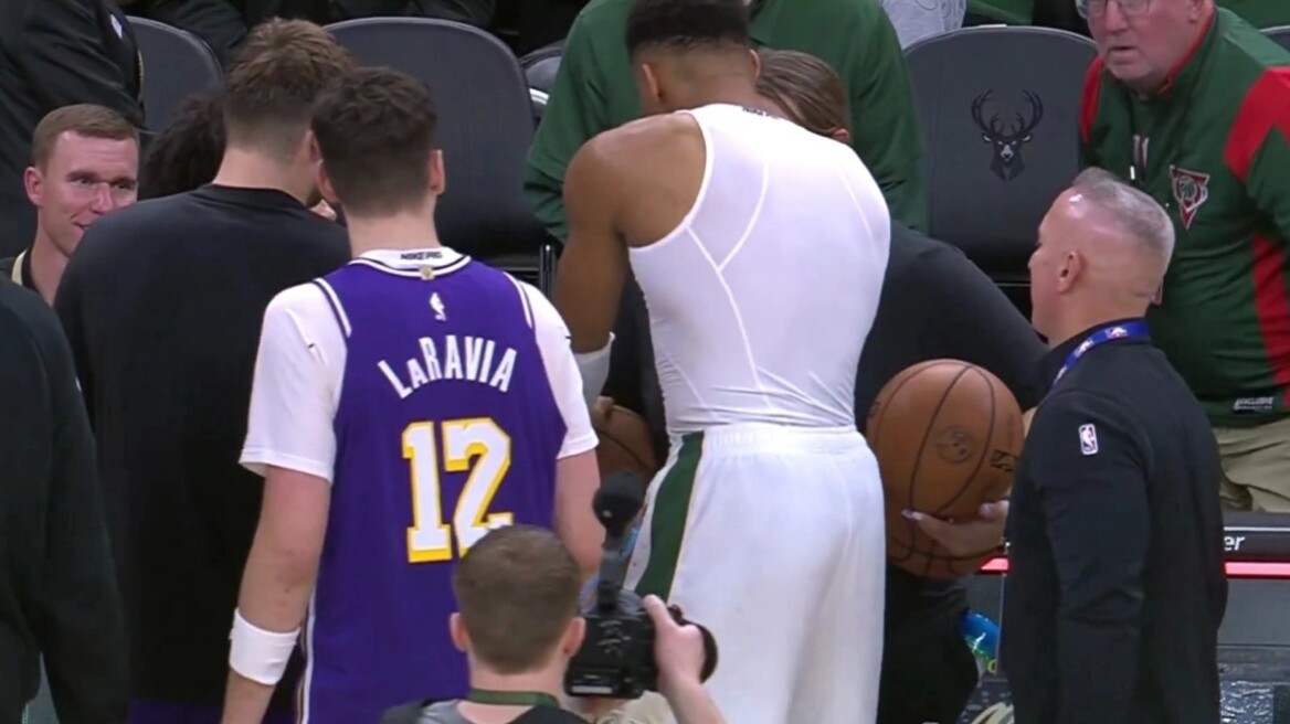 Στο φινάλε της αναμέτρησης μεταξύ Μπακς και Λέικερς, η οποία έληξε με σκορ 95-119 υπέρ των Λέικερς, σημειώθηκε μια μικρή ένταση που όμως έσβησε γρήγορα χάρη στην παρέμβαση του Γιάννη Αντετοκούνμπο. Το περιστατικό αφορούσε την επιθυμία των Λέικερς να κρατήσει ο Αντού Τιερό, rookie της ομάδας, την μπάλα με την οποία σημείωσε τους πρώτους του πόντους στο NBA. Ωστόσο, οι διαιτητές, ακολουθώντας τον κανονισμό, δεν επέτρεψαν να δοθεί η μπάλα στον νεαρό παίκτη, αφαιρώντας την από τους Λέικερς παρά τις αντιδράσεις τους και παραδίδοντάς την σε μέλος του επιτελείου των Μπακς. Σε εκείνο το σημείο, ο Γιάννης Αντετοκούνμπο ανέλαβε δράση. Χωρίς δεύτερη σκέψη, πήρε την μπάλα από την υπεύθυνη των Μπακς και την παρέδωσε στον Λούκα Ντόντσιτς, με σκοπό να φτάσει τελικά στα χέρια του Τιερό. Ο Σλοβένος σταρ ευχαρίστησε θερμά τον Γιάννη για την ευγενική του χειρονομία, δίνοντας έτσι ένα αίσιο και συγκινητικό τέλος σε αυτή την ιδιόμορφη κατάσταση.