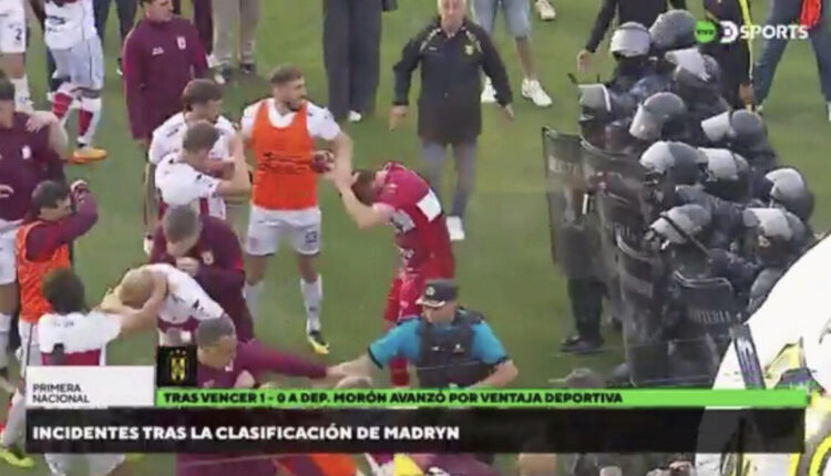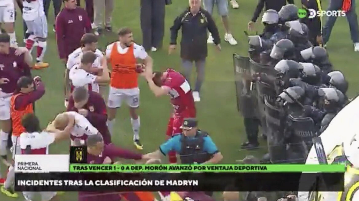 Απίστευτα σκηνικά εκτυλίχθηκαν στην Αργεντινή κατά τη διάρκεια της αναμέτρησης Deportivo Madryn – Deportivo Morón για την ημιτελική φάση των play-offs ανόδου της Β’ κατηγορίας. Ο αγώνας, που είχε κριθεί με οριακή νίκη της Deportivo Madryn (1-0, όπως και στον πρώτο αγώνα που κέρδισε η Deportivo Morón 1-0), μετατράπηκε σε πεδίο μάχης λίγο μετά το τελικό σφύριγμα, οδηγώντας σε γενικευμένη συμπλοκή εντός αγωνιστικού χώρου.