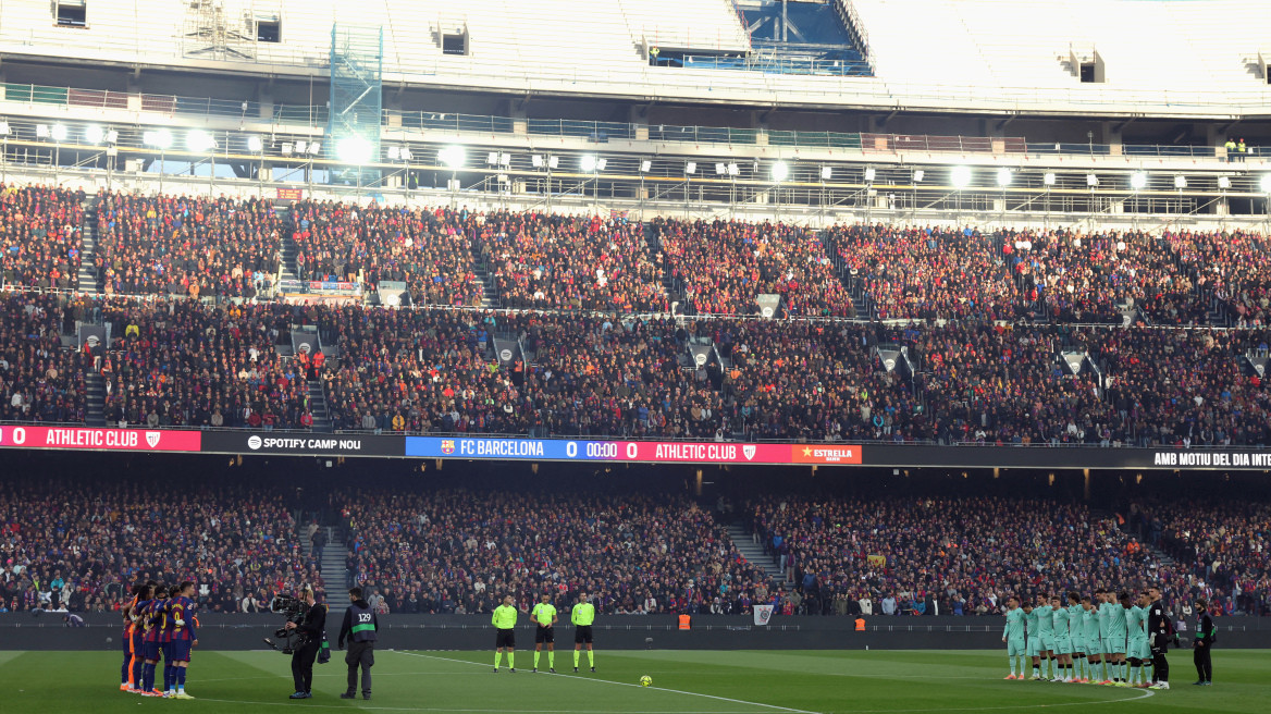 Το νέο Spotify Camp Nou, με χωρητικότητα 45.401 θεατών, γέμισε ασφυκτικά για την αναμέτρηση της La Liga με την Αθλέτικ Μπιλμπάο. Τα έργα ανακαίνισης στο θρυλικό στάδιο συνεχίζονται, με την αρχική άδεια να αφορά 45.000 θεατές. Σύμφωνα με το χρονοδιάγραμμα, το 2026 η χωρητικότητα αναμένεται να αυξηθεί στους 62.000, ενώ το 2027 ή το 2028, με την ολοκλήρωση του έργου που εκτιμάται ότι θα κοστίσει 1,5 δισεκατομμύριο ευρώ, το γήπεδο θα μπορεί να φιλοξενεί 105.000 θεατές.