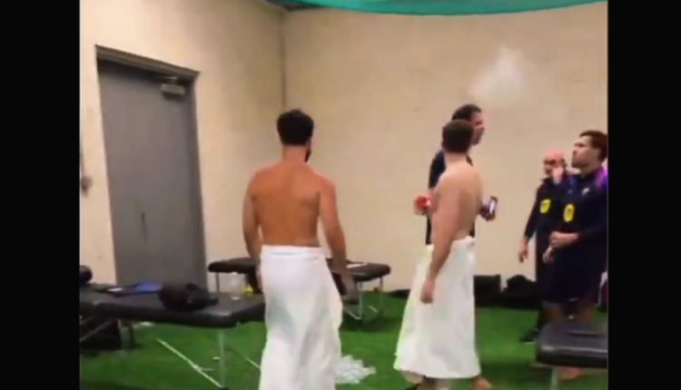 Η Μπαρτσελόνα πανηγυρίζει το Super Cup Ισπανίας, ένα απρόοπτο στα αποδυτήρια