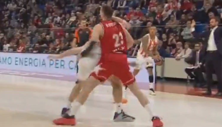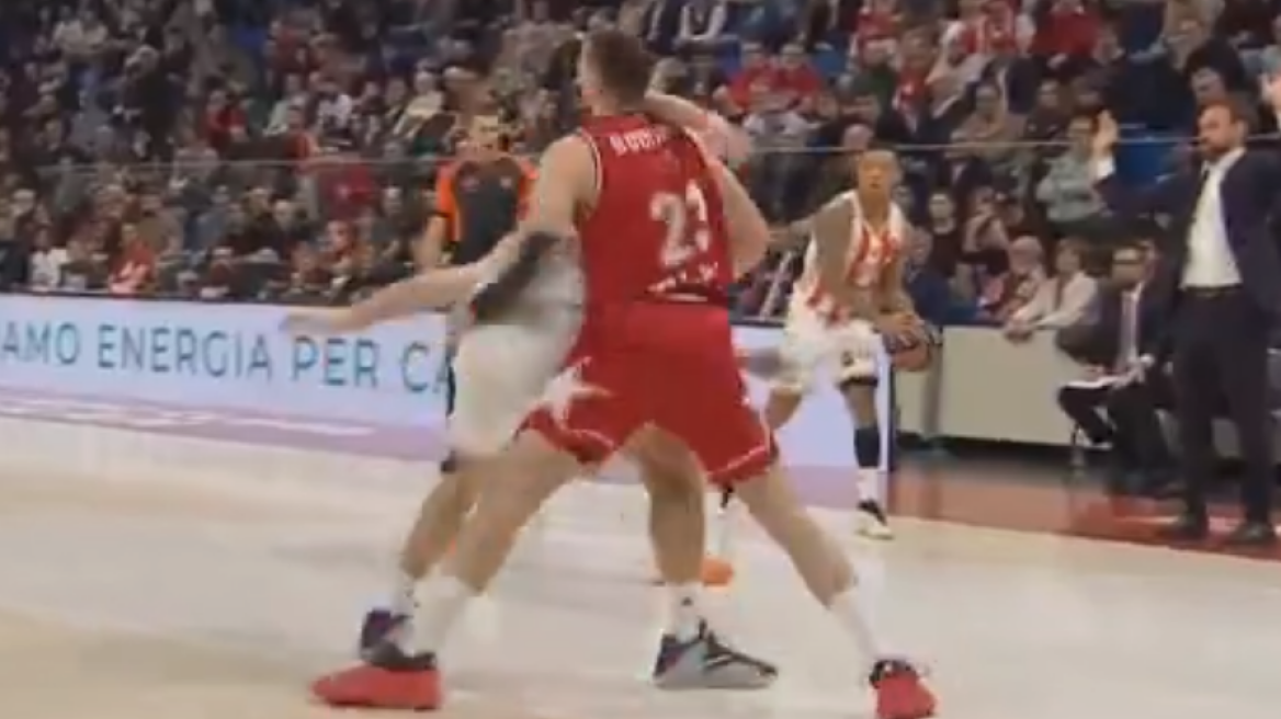 Κατά τη διάρκεια της φάσης, ο Νίκολα Κάλινιτς, αφού είχε πασάρει την μπάλα για ένα τρίποντο, προσπαθούσε να αντιμετωπίσει το μαρκάρισμα του Μάρκο Γκούντουριτς, ανοίγοντας τα χέρια του. Αιφνιδιαστικά, ο Σέρβος παίκτης βρέθηκε στο έδαφος, κρατώντας το πρόσωπό του. Ο διαιτητής καταλόγισε επιθετικό φάουλ υπέρ της Μιλάνο.