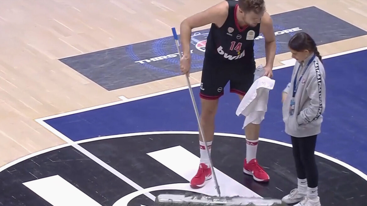 Στο τέλος του πρώτου δεκαλέπτου, με τους Πειραιώτες να προηγούνται με διψήφια διαφορά (16-27), ένα όμορφο στιγμιότυπο εκτυλίχθηκε στο Κλειστό Καλλιθέας. Ο Σάσα Βεζένκοφ παρατήρησε ότι χρειαζόταν να σκουπιστεί το παρκέ και ζήτησε ευγενικά από τους ανθρώπους του γηπέδου να το φροντίσουν.