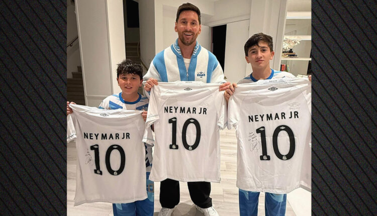 Μια συγκινητική στιγμή όπου ο Λιονέλ Μέσι κρατά τη φανέλα της Σάντος με το νούμερο 10, συνδέοντας το παρελθόν, το παρόν και το μέλλον του αθλήματος.