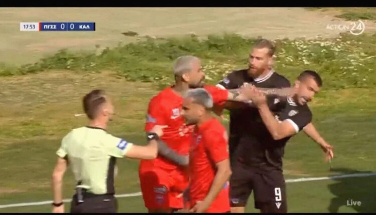 Ωστόσο, η κατάσταση δεν ηρέμησε, αλλά αντίθετα οξύνθηκε. Παίκτες και των δύο ομάδων ενεπλάκησαν σε έντονο διαπληκτισμό, με την ένταση να κορυφώνεται στον αγωνιστικό χώρο. Εν μέσω του γενικού εκνευρισμού, ο Δημήτρης Κολοβός χτύπησε στο πρόσωπο τον επιθετικό της Καλαμάτας, Βασίλη Μάντζη. Ο διαιτητής, έχοντας άμεση εποπτεία του περιστατικού, υπέδειξε αμέσως την κόκκινη κάρτα, στέλνοντας τον παίκτη του Πανιωνίου στα αποδυτήρια.