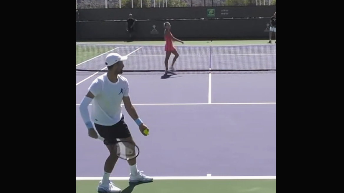 Η Λευκορωσίδα αθλήτρια, η οποία διατηρεί φιλικές σχέσεις με τον «Νόλε», έκανε μια απρόσμενη εμφάνιση στην προπόνησή του, μετατρέποντας ένα μέρος του γηπέδου σε αυτοσχέδια πασαρέλα. Φαίνεται πως η Σαμπαλένκα επέλεξε το κομμάτι του κορτ παράλληλα με το φιλέ για να επιδείξει το στιλ της.