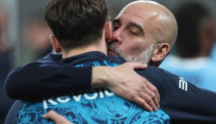 Ο Πεπ Γκουαρδιόλα με σημάδια στο κεφάλι μετά τη νίκη της Μάντσεστερ Σίτι