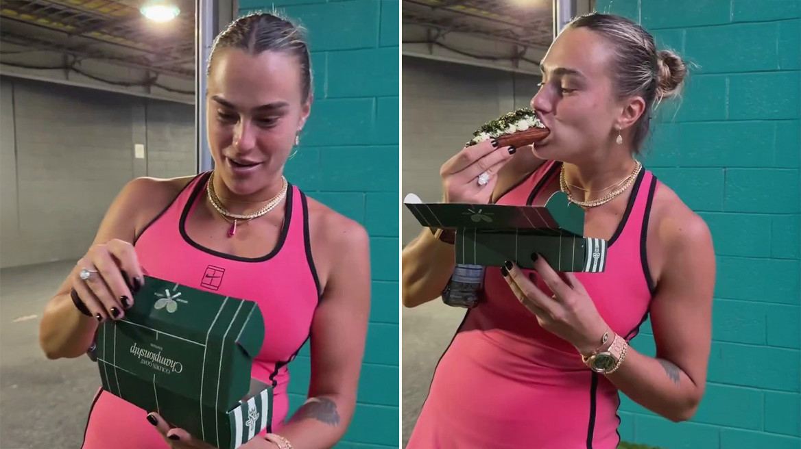 Η Αρίνα Σαμπαλένκα απολαμβάνει ένα χρυσό χοτ ντογκ στο Μαϊάμι