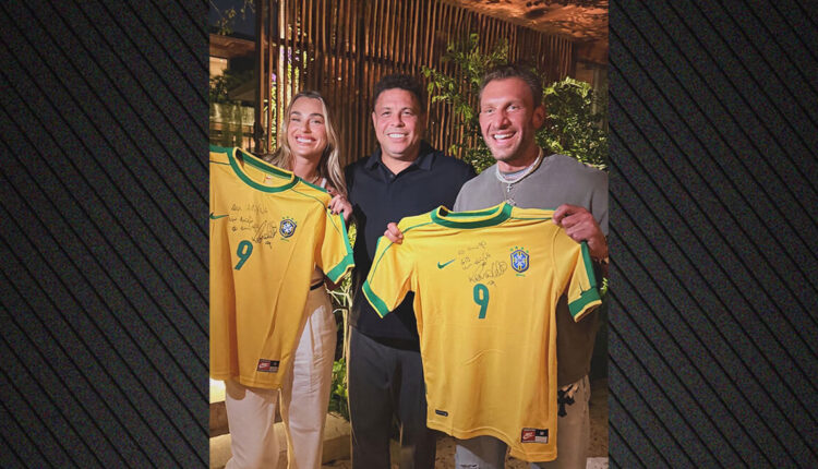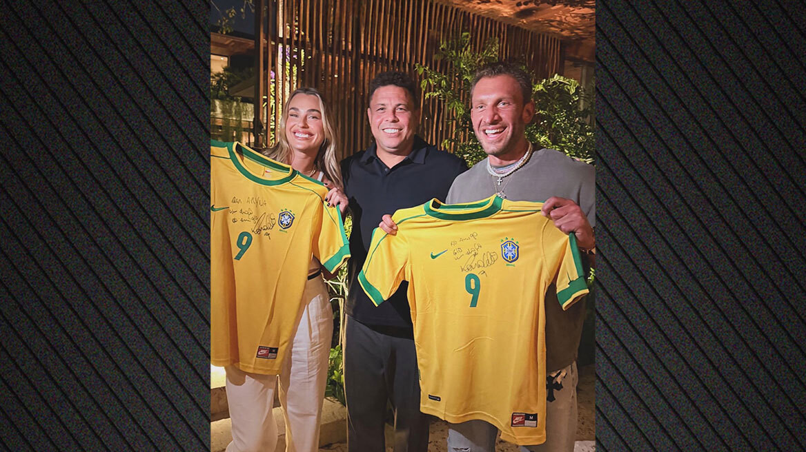 Στη φωτογραφία, η Σαμπαλένκα και ο σύντροφός της κρατούν στα χέρια τους δύο υπογεγραμμένες φανέλες της εθνικής Βραζιλίας, με τον αριθμό «9» και την υπογραφή του ίδιου του Ρονάλντο. Το στιγμιότυπο αποτυπώνει την ευτυχία και τον ενθουσιασμό τους για αυτή τη μοναδική συνάντηση.