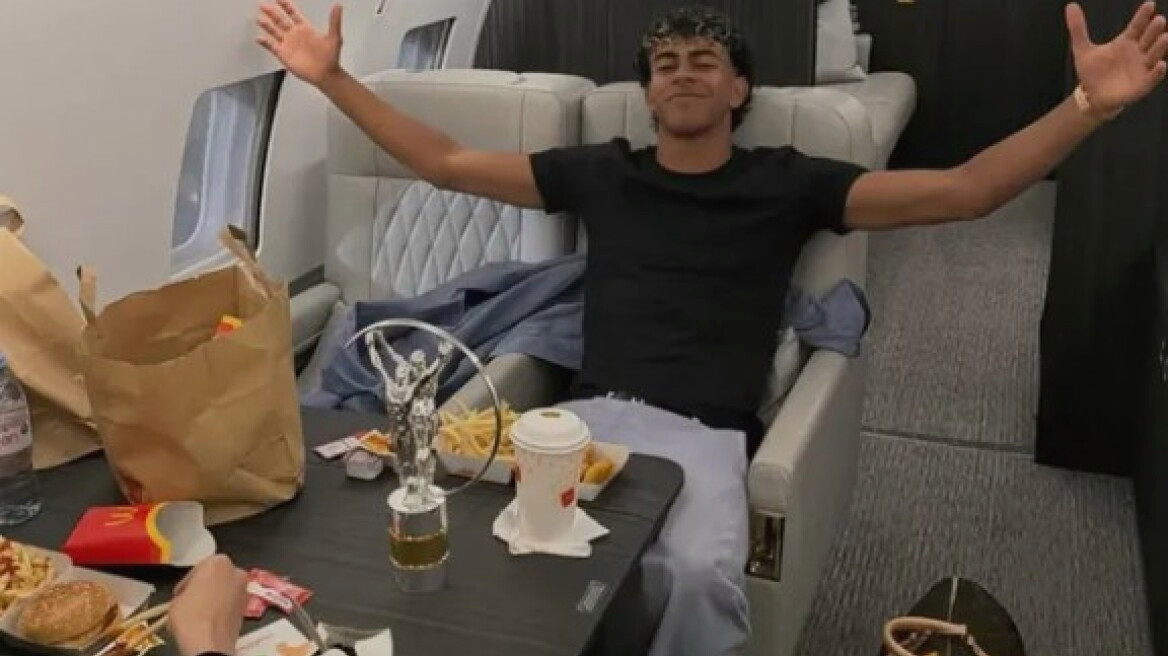 Ωστόσο, η ανάρτηση που συγκέντρωσε τα περισσότερα σχόλια και τράβηξε τα βλέμματα ήταν εκείνη μέσα από το ιδιωτικό αεροπλάνο που τον μετέφερε από τη Μαδρίτη στη Βαρκελώνη. Ο 19χρονος επιθετικός επέλεξε να γιορτάσει τη διάκρισή του απολαμβάνοντας ένα γεύμα από τα McDonalds, έχοντας το πολυπόθητο βραβείο δίπλα του. Ο ίδιος πόζαρε με χαμόγελο, συνδυάζοντας την αυστηρότητα της αθλητικής κορυφής με την ανέμελη καθημερινότητα ενός εφήβου που μόλις κατέκτησε μια σπουδαία διάκριση.