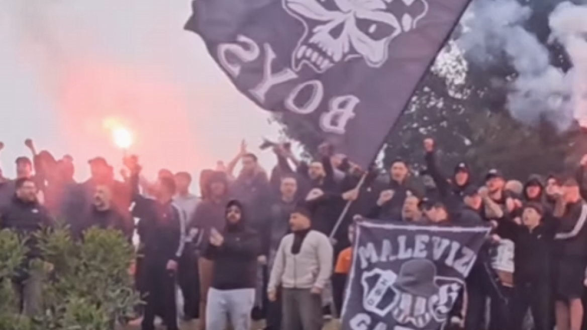 Εντυπωσιακή ατμόσφαιρα από τους οπαδούς στην τελευταία προπόνηση της ομάδας πριν την αναχώρηση για το Πανθεσσαλικό Στάδιο.