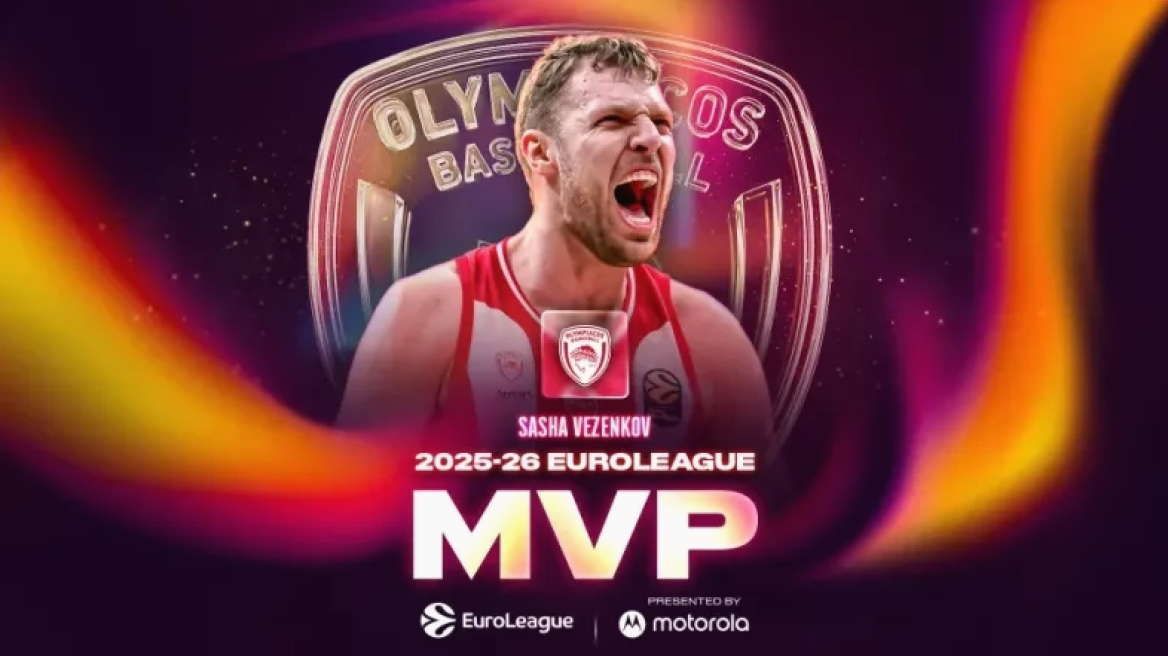 Ο Σάσα Βεζένκοβ είναι και επίσημα ο πολυτιμότερος παίκτης (MVP) της EuroLeague για τη σεζόν 2025-26, επιβεβαιώνοντας την απόλυτη κυριαρχία του στα ευρωπαϊκά παρκέ. Η κατάκτηση αυτής της διάκρισης επισφραγίζει την ηγετική του παρουσία στην πορεία του Ολυμπιακού, ο οποίος ολοκλήρωσε την κανονική περίοδο στην πρώτη θέση της βαθμολογίας.