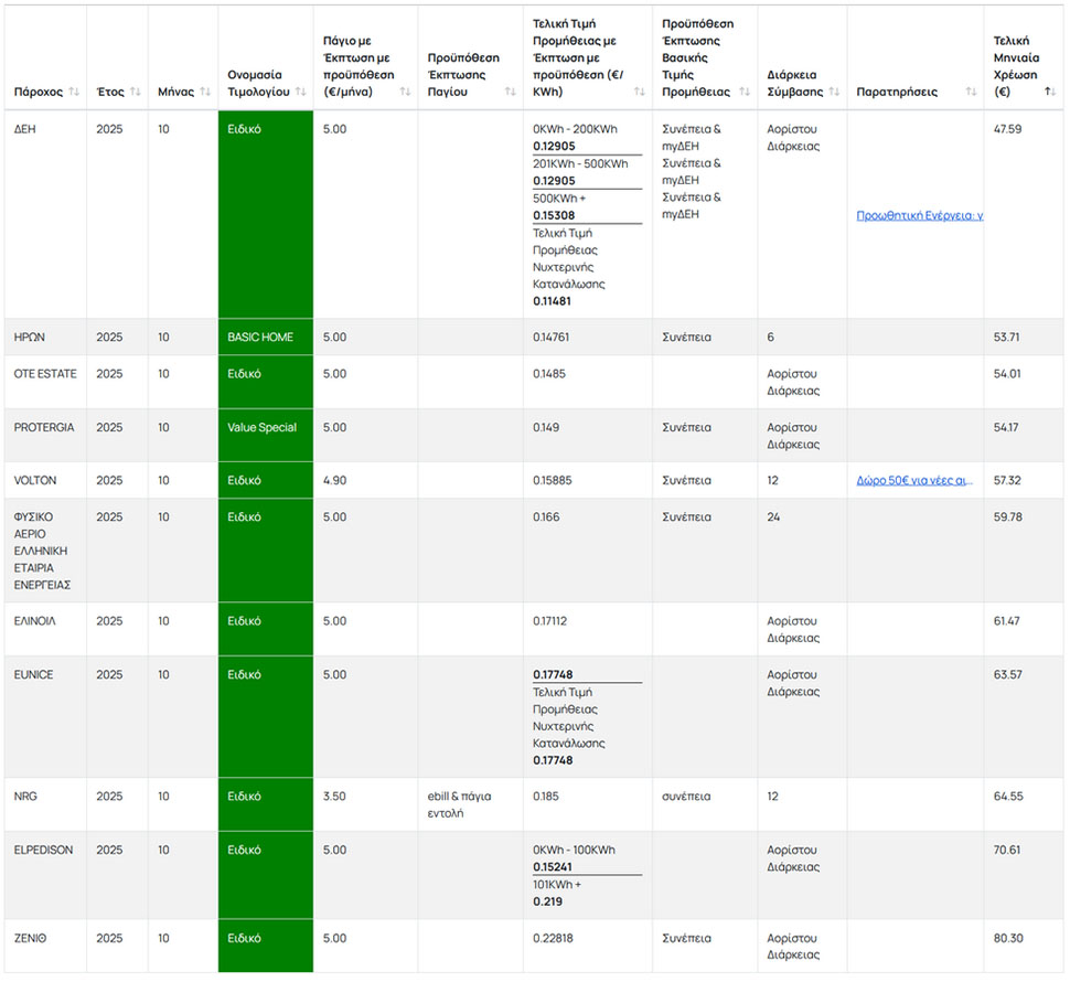 Σε όλες τις περιπτώσεις πάντως, σύμφωνα με τα στοιχεία της Ρυθμιστικής Αρχής, τα τιμολόγια του Οκτωβρίου είναι χαμηλότερα από εκείνα του Αυγούστου σε ποσοστό από 2 έως 17%.