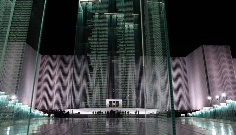 Η «Κιβωτός Εθνικής Μνήμης» είναι μία συλλογή από γυάλινες κολόνες που τοποθετούνται σε μία καμπύλη. Ξεκινούν από ύψος ενός περίπου μέτρου και φτάνουν έως και τα έξι μέτρα, ενώ φέρουν πάνω τους χαραγμένα τα ονόματα των 121.692 πεσόντων των Εθνικών Αγώνων της Ελλάδας. Τα ονόματα «αιωρούνται στον χώρο», ενώ και ο βραδινός φωτισμός των γυαλιών τους προσδίδει ιδιαίτερες χρωματικές ανταύγειες.