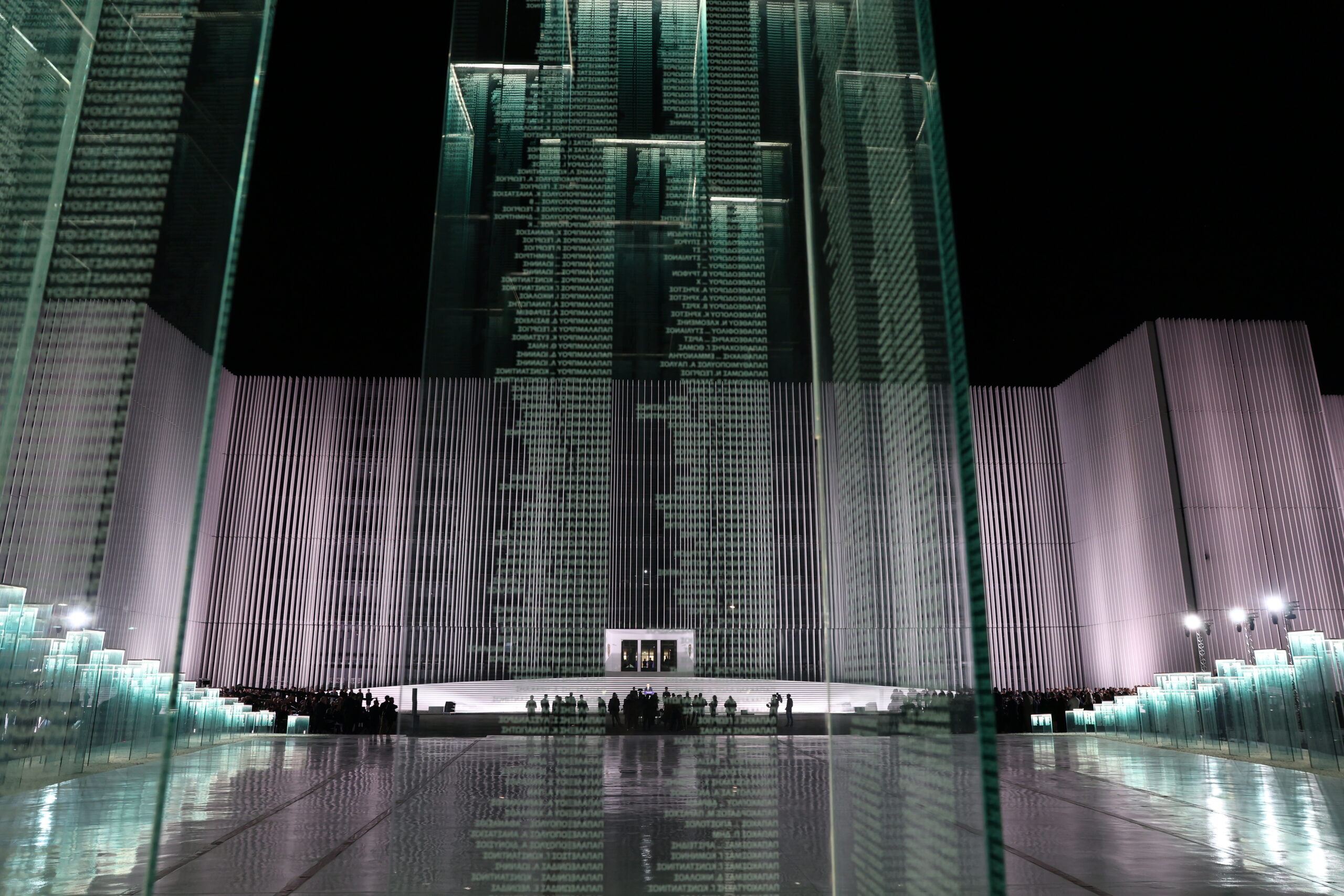 Η «Κιβωτός Εθνικής Μνήμης» είναι μία συλλογή από γυάλινες κολόνες που τοποθετούνται σε μία καμπύλη. Ξεκινούν από ύψος ενός περίπου μέτρου και φτάνουν έως και τα έξι μέτρα, ενώ φέρουν πάνω τους χαραγμένα τα ονόματα των 121.692 πεσόντων των Εθνικών Αγώνων της Ελλάδας. Τα ονόματα «αιωρούνται στον χώρο», ενώ και ο βραδινός φωτισμός των γυαλιών τους προσδίδει ιδιαίτερες χρωματικές ανταύγειες.