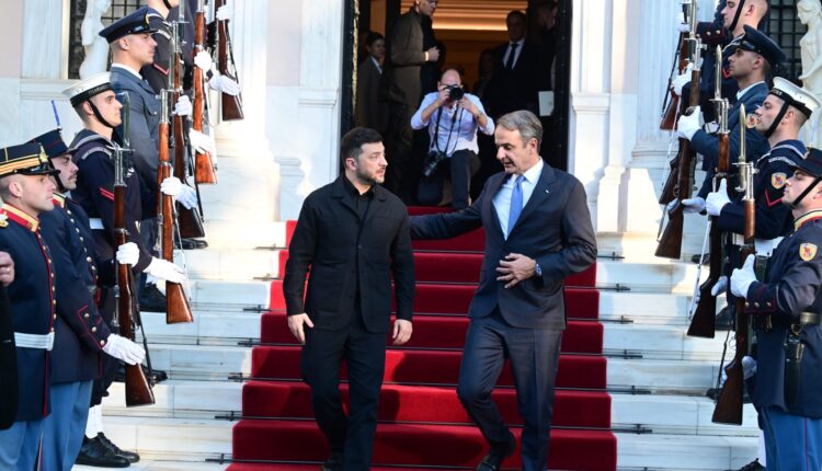 «Η Ουκρανία μπορεί να βασίζεται στη σταθερή στήριξη της Ελλάδας», τόνισε ο κ. Μητσοτάκης, με τον κ. Ζελένσκι να χαρακτηρίζει «πολύ σημαντική αυτή τη στήριξη, ειδικά στον δύσκολο χειμώνα που έρχεται».
