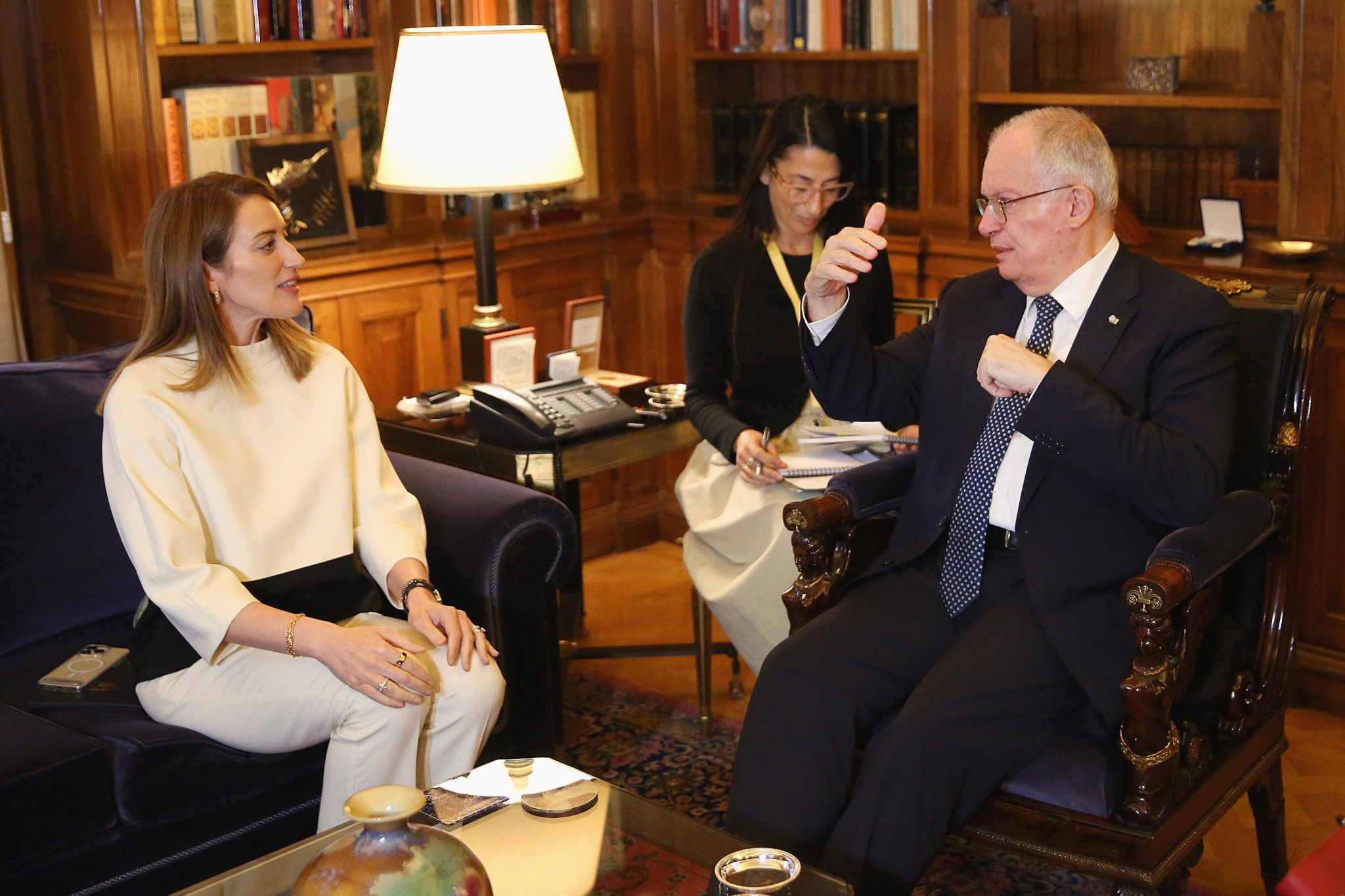 Η Πρόεδρος του Ευρωπαϊκού Κοινοβουλίου Ρομπέρτα Μέτσολα στο Προεδρικό Μέγαρο