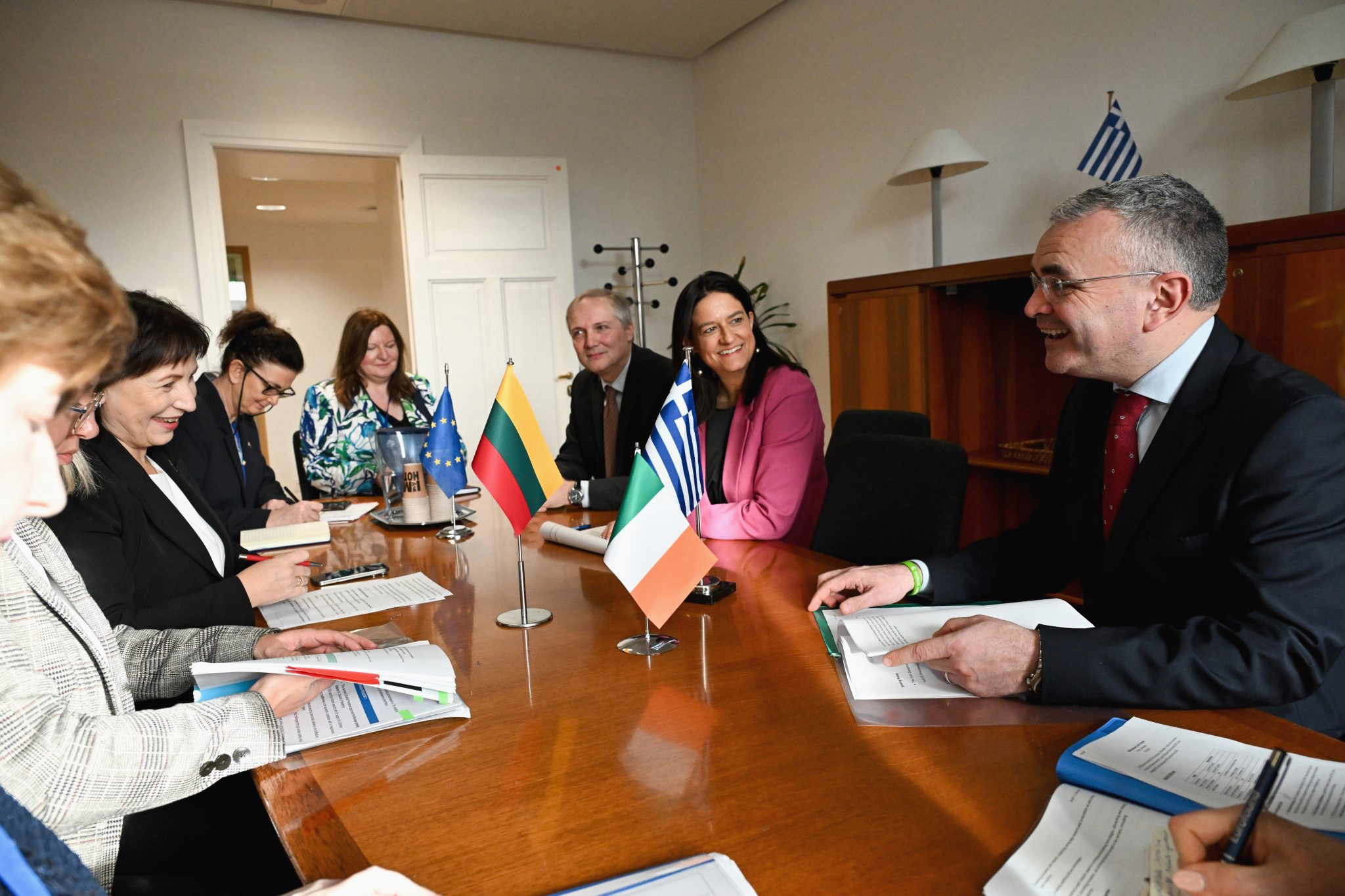 Η Ελληνίδα Υπουργός Νίκη Κεραμέως, κατά την προσέλευσή της στο Συμβούλιο, δήλωσε: «Σήμερα στις Βρυξέλλες ενημερώνω το Συμβούλιο Υπουργών Εργασίας Ευρωπαϊκής Ένωσης και την Αρμόδια Επίτροπο και Αντιπρόεδρο της Ευρωπαϊκής Επιτροπής, την κυρία Minzatu, για την ιστορική Εθνική Κοινωνική Συμφωνία που συνήφθη την περασμένη εβδομάδα μεταξύ της ελληνικής κυβέρνησης και όλων των εθνικών κοινωνικών εταίρων. Μία συμφωνία η οποία ενισχύει τις συλλογικές συμβάσεις εργασίας στη χώρα μας, οδηγεί στην προστασία περισσότερων εργαζομένων από συλλογικές συμβάσεις εργασίας, προσφέρει ένα πιο σταθερό εργασιακό περιβάλλον για τις επιχειρήσεις και βάζει ξεκάθαρους κανόνες συνολικά στην αγορά εργασίας».