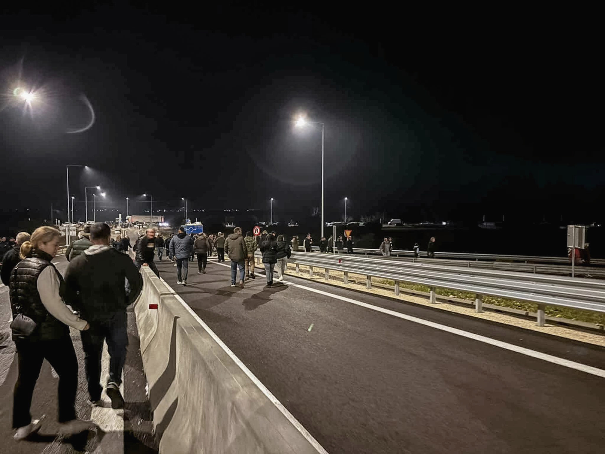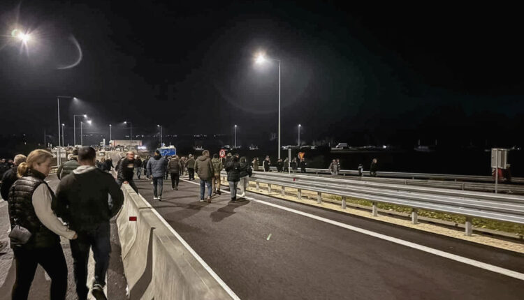 Το βράδυ της Πέμπτης, οι αγρότες επιχείρησαν να προσεγγίσουν τα διόδια του νέου αυτοκινητοδρόμου με σκοπό να επιτρέψουν την ελεύθερη διέλευση των οχημάτων, ωστόσο η αστυνομία απέτρεψε την προσπάθειά τους. Στη συνέχεια, οι διαμαρτυρόμενοι προχώρησαν σε πεζή πορεία, οδηγώντας στον αποκλεισμό και των δύο ρευμάτων κυκλοφορίας.