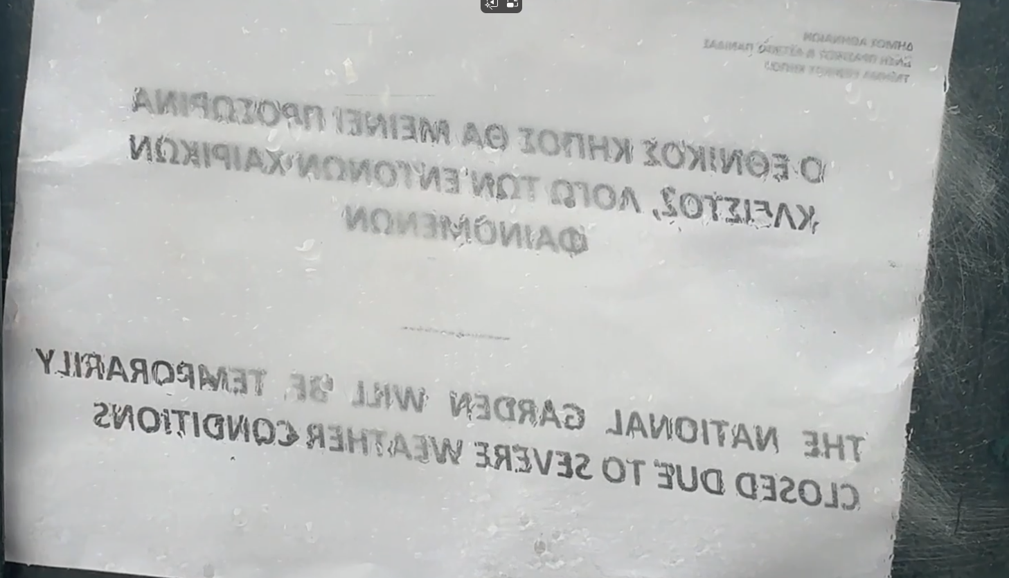 Κλειστός ο Εθνικός Κήπος λόγω ακραίων καιρικών φαινομένων