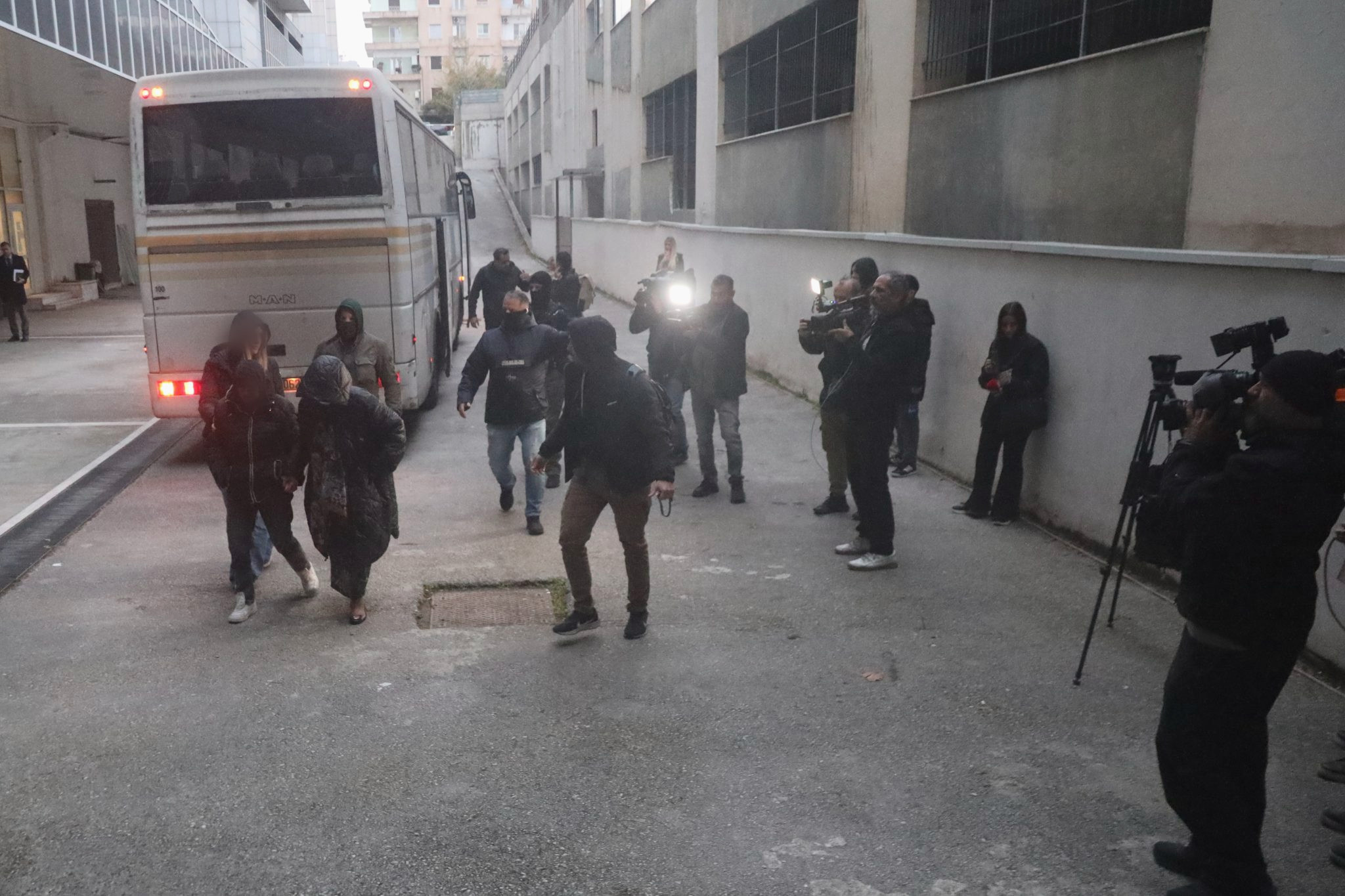 Οι κατηγορούμενοι αποβιβάστηκαν από ένα λευκό λεωφορείο, με σκυμμένα κεφάλια και, στην πλειονότητά τους, με καλυμμένα τα χαρακτηριστικά. Στη συνέχεια, οδηγήθηκαν ενώπιον του εισαγγελέα, ο οποίος άσκησε ποινικές διώξεις για την υπόθεση. «Ακόμα δεν έχουμε πάρει τις δικογραφίες. Από την πρώτη επαφή που είχαμε, τουλάχιστον οι κατηγορούμενοι που εκπροσωπούμε εμείς αρνούνται τις κατηγορίες», δήλωσε ο Ηρακλής Παπαδόπουλος, συνήγορος υπεράσπισης έξι κατηγορούμενων.