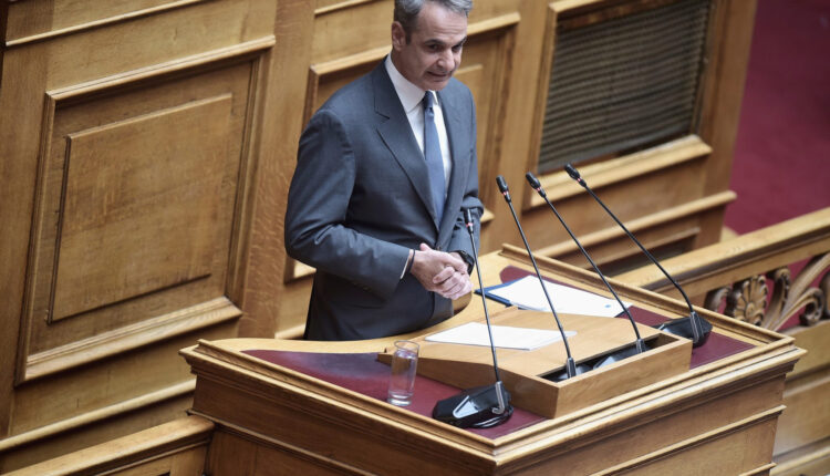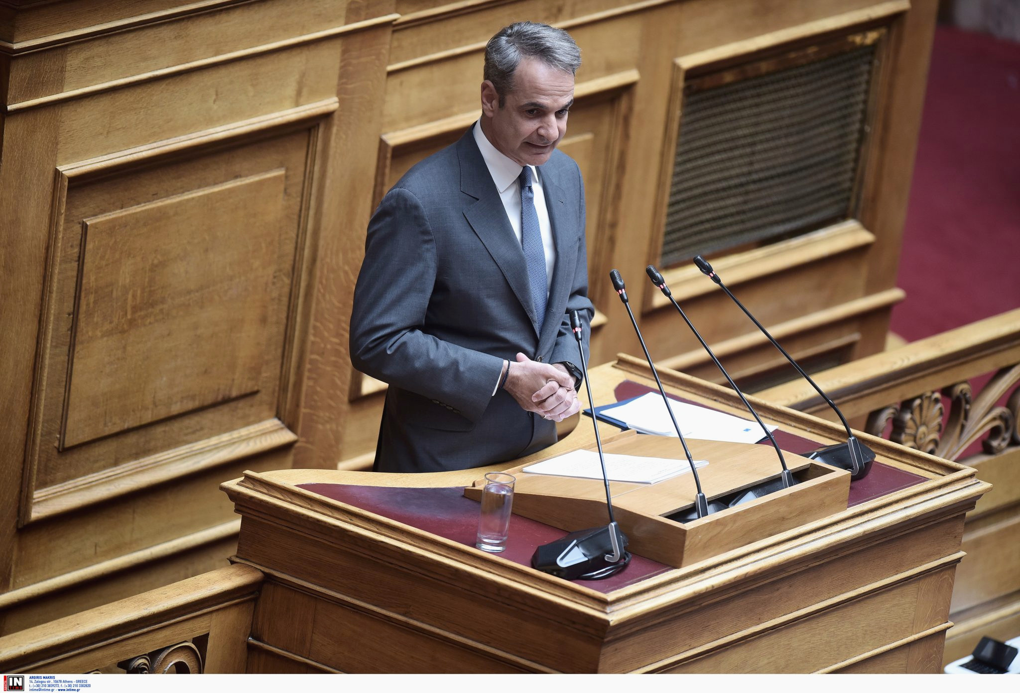 Ο Κυριάκος Μητσοτάκης εκφωνεί ομιλία στη Βουλή για τον προϋπολογισμό του 2026
