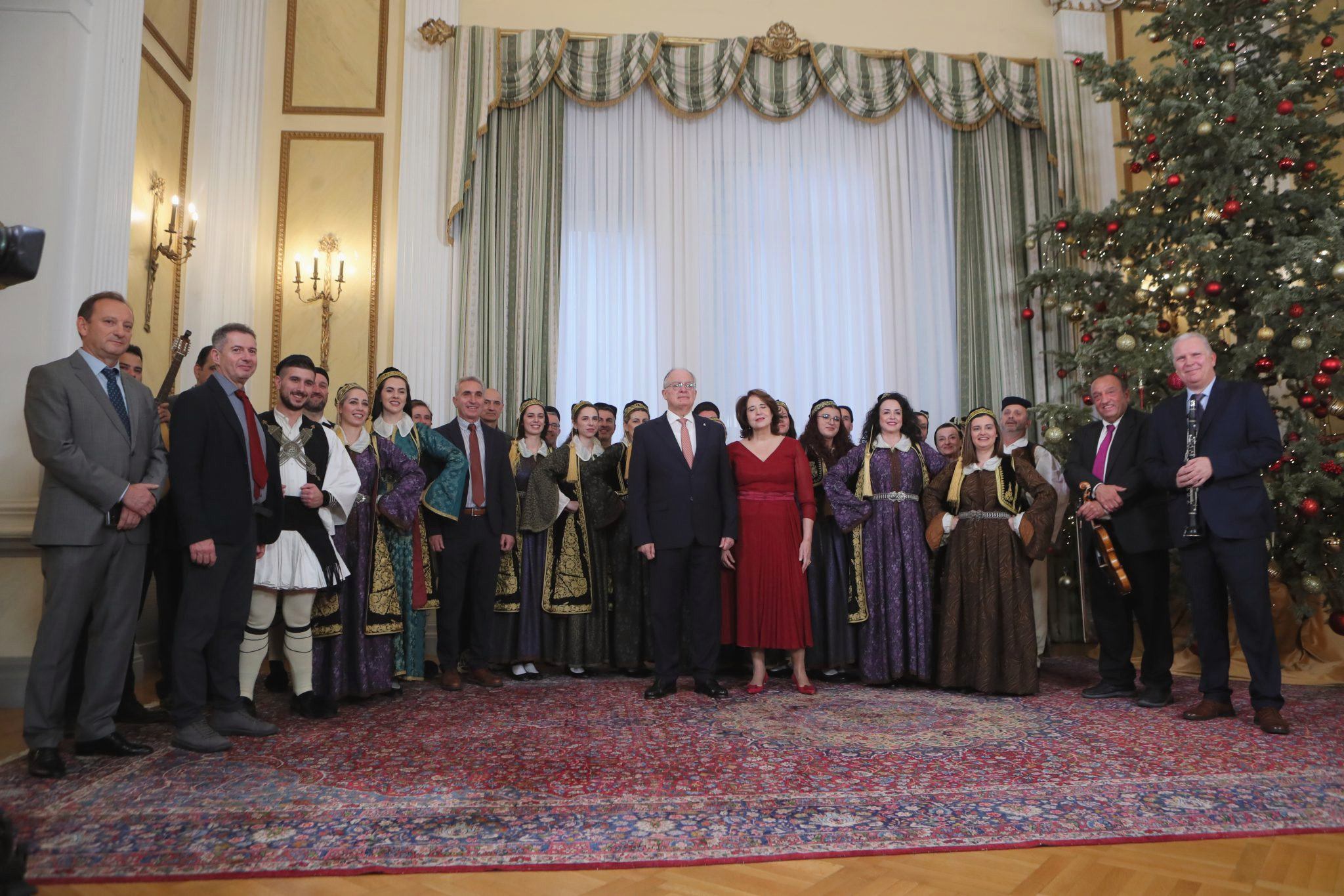 Με τις παραδοσιακές μελωδίες των Χριστουγέννων να πλημμυρίζουν τα επίσημα κτίρια, η πολιτική ηγεσία της χώρας υποδέχτηκε φορείς και συλλόγους, ανταλλάσσοντας ευχές για τις γιορτές.