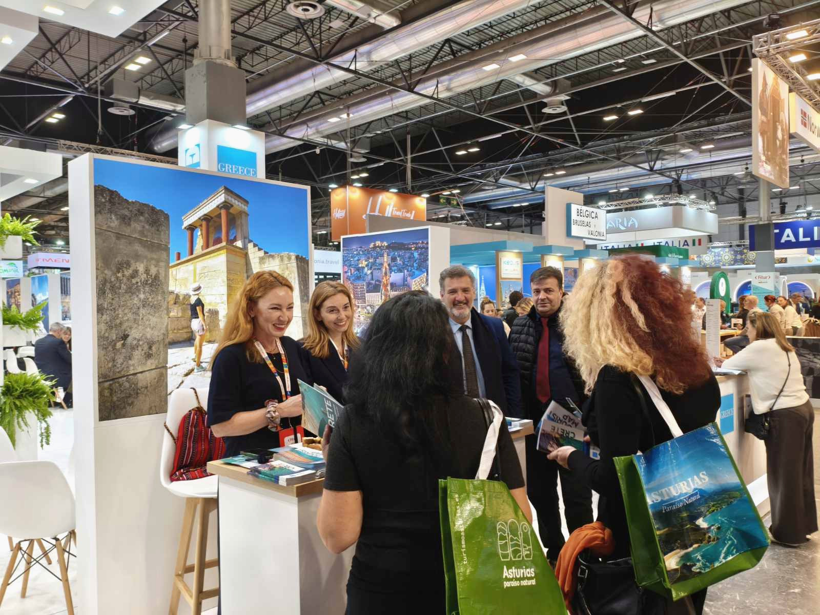 Ιδιαίτερο ενδιαφέρον παρουσίασε η συνάντηση που πραγματοποιήθηκε με πρωτοβουλία της κας Καλλιόπης Κουρούσια, Προϊσταμένης του ΕΟΤ Ισπανίας, με εκπροσώπους του Eupopamundo Vacaciones, ενός κορυφαίου Tour Operator με ισχυρή παρουσία κυρίως στη Λατινική Αμερική. Η συζήτηση επικεντρώθηκε στη φιλοξενία του ετήσιου συνεδρίου του συγκεκριμένου Tour Operator στην Κρήτη για το 2026. Στο συνέδριο αναμένεται να συμμετάσχουν οι κορυφαίοι πωλητές ταξιδιωτικών πακέτων της εταιρείας από τη Λατινική Αμερική. Αυτή η πρωτοβουλία αναμένεται να προβάλει με στοχευμένο και αποτελεσματικό τρόπο την Κρήτη στις αναδυόμενες αγορές της Λατινικής Αμερικής, ενισχύοντας παράλληλα τη στρατηγική της Περιφέρειας για την προσέλκυση επισκεπτών υψηλής αξίας. Επιπλέον, ενδυναμώνει την προβολή του νησιού ως κορυφαίου τουριστικού προορισμού, δημιουργώντας μοναδικές ευκαιρίες προβολής σε νέες, δυναμικές αγορές. Την παρουσία τους στο περίπτερο της Περιφέρειας Κρήτης τίμησαν επίσης ο Πρέσβης της Ελλάδας στην Ισπανία, κ. Απόστολος Μπαλτάς, και ο Πρόεδρος του Ισπανο-ελληνικού Εμπορικού Επιμελητηρίου, κ. Ανδρέας Παππάς.