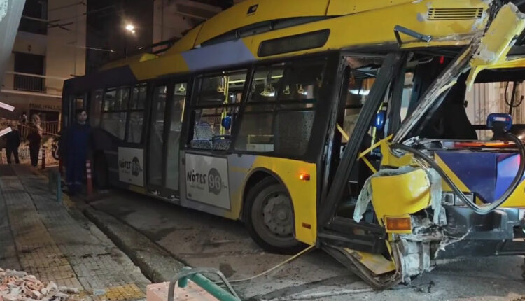 Τρόλεϊ προσέκρουσε σε πολυκατοικία στα Πετράλωνα, τραυματίστηκε ο οδηγός
