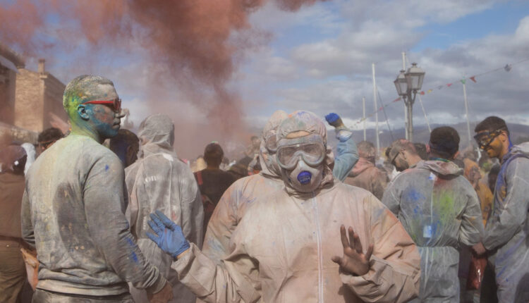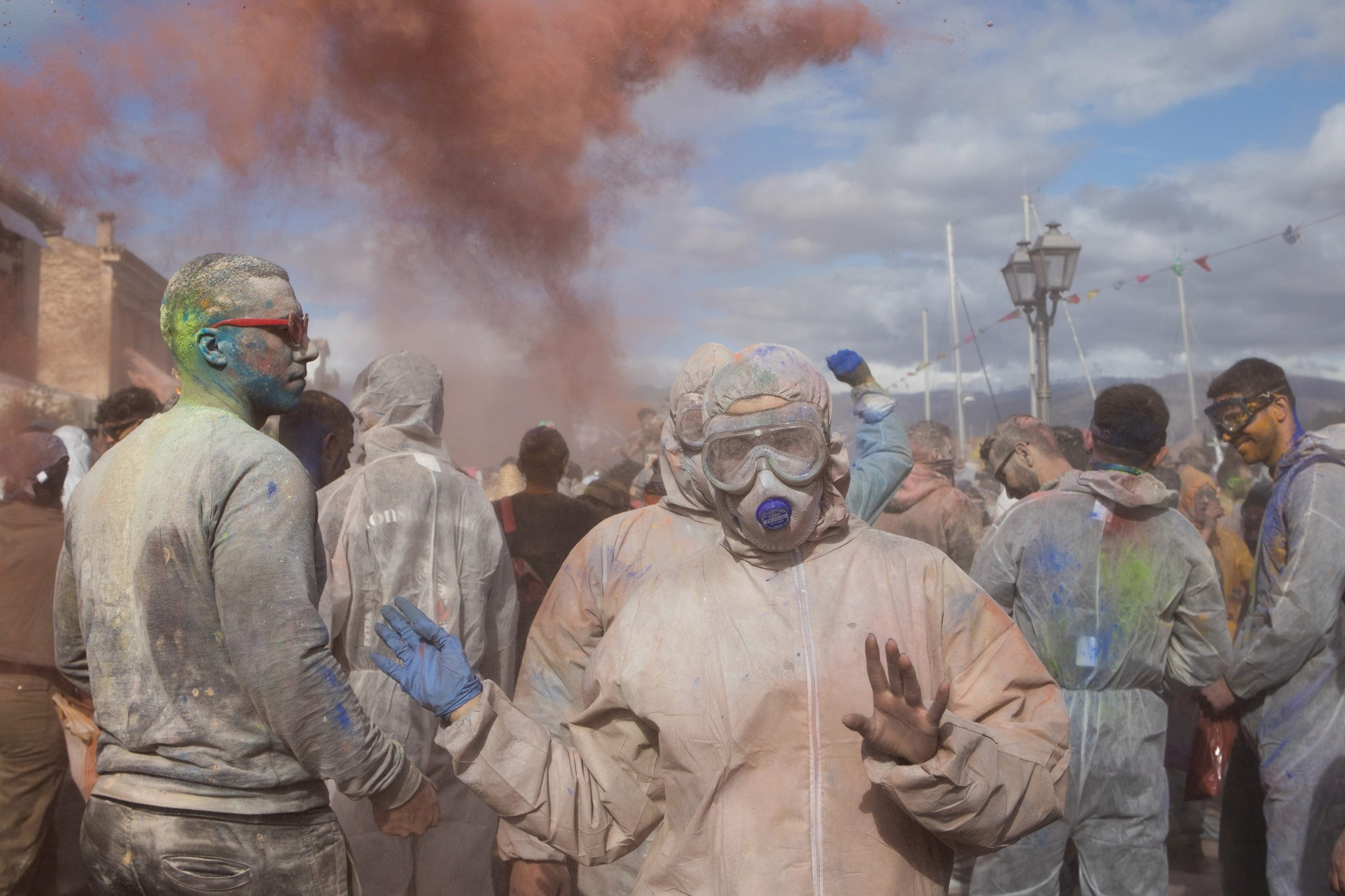 Χιλιάδες επισκέπτες «βουτούν» στο αλεύρι την Καθαρά Δευτέρα σε ένα από τα πιο εντυπωσιακά αποκριάτικα δρώμενα