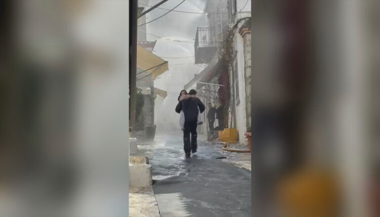 Μια ξαφνική “καταιγίδα” έχει “πλημμυρίσει” ένα από τα πιο γραφικά στενά της Ύδρας, ωστόσο πρόκειται για μια επιδέξια τεχνητή βροχή που δημιουργήθηκε ειδικά για τις ανάγκες της ταινίας “The Wild”. Για την υλοποίηση μιας κρίσιμης σκηνής, όπου ένας κασκαντέρ σπεύδει να βοηθήσει την κόρη του Μπραντ Πιτ, η οποία έχει τραυματιστεί από ένα ζώο, ο δρόμος καλύφθηκε με μαύρο τάπητα.