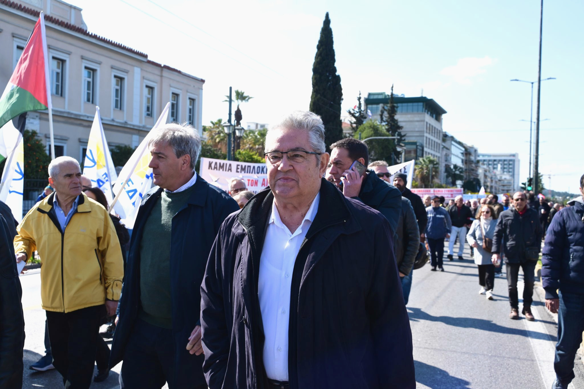 Ο Γενικός Γραμματέας της Κεντρικής Επιτροπής του ΚΚΕ κατηγορεί την ελληνική κυβέρνηση για την εμπλοκή της στις στρατιωτικές επιχειρήσεις μέσω των βάσεων του ΝΑΤΟ.