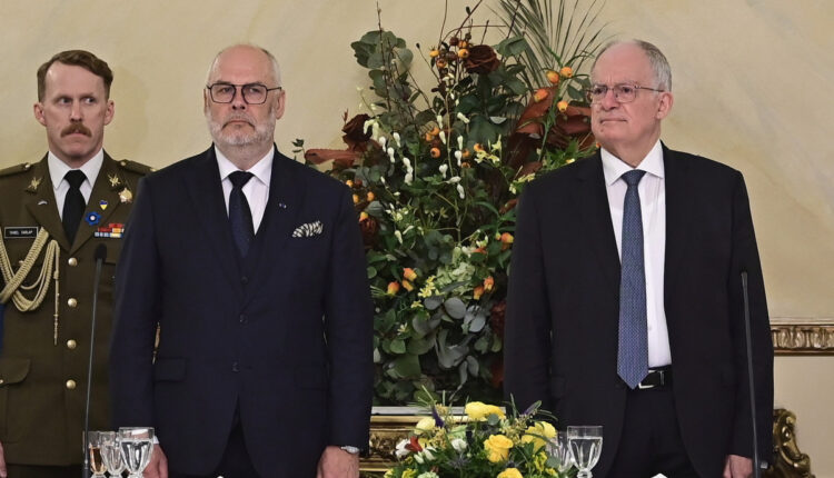 Δείπνο στο Προεδρικό Μέγαρο προς τιμήν του Προέδρου της Εσθονίας Άλαρ Κάρις με έμφαση στην κοινή στάση απέναντι στις σύγχρονες γεωπολιτικές προκλήσεις και την ασφάλεια.