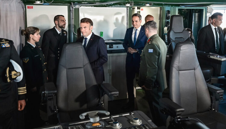 Η κοινή παρουσία του Εμανουέλ Μακρόν και του Κυριάκου Μητσοτάκη στη φρεγάτα «Κίμων»