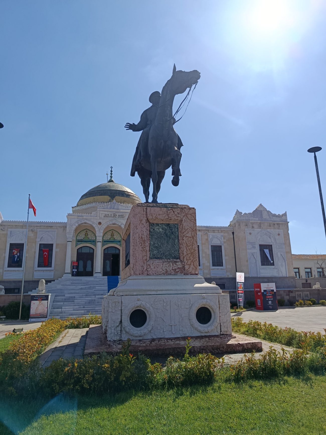 Επόμενη στάση το Εθνογραφικό Μουσείο της Άγκυρας. Το μουσείο φιλοξένησε προσωρινά τη σαρκοφάγο του Κεμάλ Ατατούρκ μέχρι το 1953 που τελείωσε η κατασκευή του Ανίτκαμπιρ. Στο εξωτερικό του μουσείου δεσπόζει το έφιππο άγαλμα του Ατατούρκ με το βλέμμα του απέναντι να δείχνει τη νέα του “κατοικία”. Πρόκειται για ένα κτίριο που είναι χαρακτηριστικό δείγμα της κεμαλικής αρχιτεκτονικής. Στο εσωτερικό του μουσείου θα στροβιλιστείς ανάμεσα σε στολίδια και παπούτσια που συλλέγονται από διάφορες περιοχές της Ανατολίας, συλλογή χαλιών και ταπήτων, τόξα, ξίφη και γιαταγάνια, τουρκικές πορσελάνες, αντικείμενα που σχετίζονται με τον Σουφισμό, για αυτό και ο στροβιλισμός στον χώρο από τον επισκέπτη.