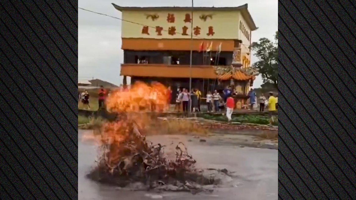 Ηφαίστειο λάσπης εξερράγη ξαφνικά στη μέση δρόμου στην Ταϊβάν