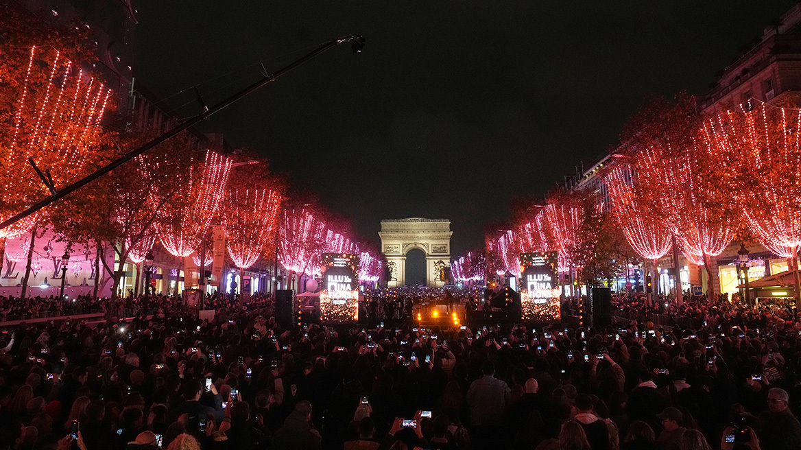 Η επίσημη τελετή φωταγώγησης, που έλαβε χώρα την Κυριακή, πλαισιώθηκε από ένα μουσικό πρόγραμμα που προσέλκυσε χιλιάδες πολίτες. Σημείο αναφοράς της βραδιάς ήταν η εμφάνιση της δημοφιλούς Καναδής τραγουδίστριας Σάρλοτ Κάρντιν. Μετά την ερμηνεία του τραγουδιού της «Tant pis pour elle», η καλλιτέχνιδα δήλωσε πως το να τραγουδά κανείς «στην ομορφότερη λεωφόρο του κόσμου» είναι «τόσο μαγικό όσο ακριβώς φαίνεται».