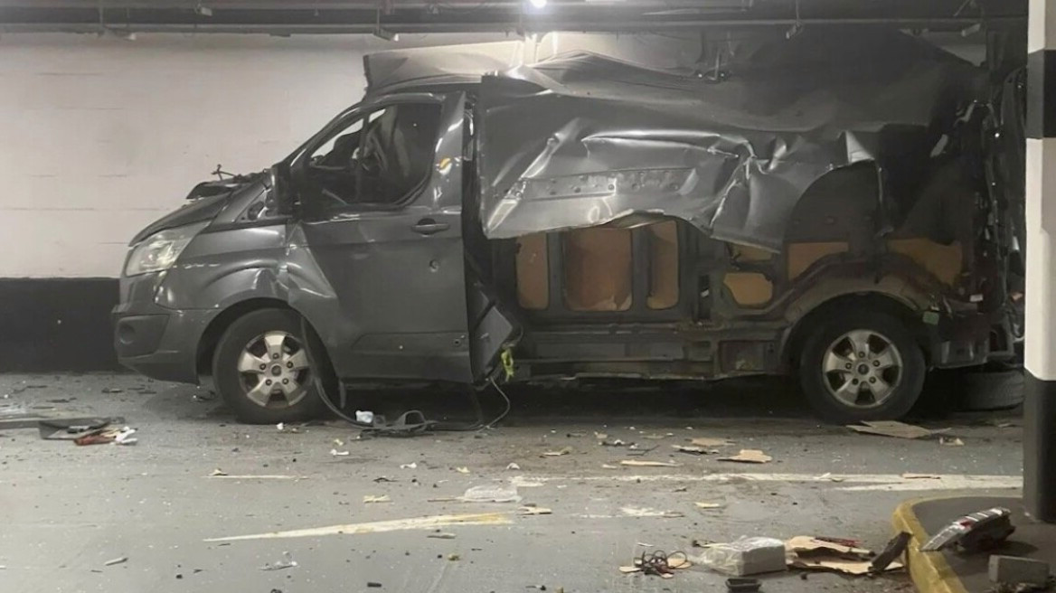Σύμφωνα με τις πρώτες εκτιμήσεις της Αστυνομίας και της Πυροσβεστικής, η έκρηξη πιθανότατα προκλήθηκε από εύφλεκτα υλικά που μετέφερε ένα βαν. Υπό αδιευκρίνιστη μέχρι στιγμής αιτία, η οροφή του βαν φαίνεται να χτύπησε στην οροφή του χώρου στάθμευσης, προκαλώντας την πυρκαγιά και την έκρηξη. Φωτογραφίες από τον τόπο του συμβάντος απεικονίζουν το βαν σε σοβαρή κατάσταση, με σπασμένα παράθυρα και εμφανές το εσωτερικό του.
